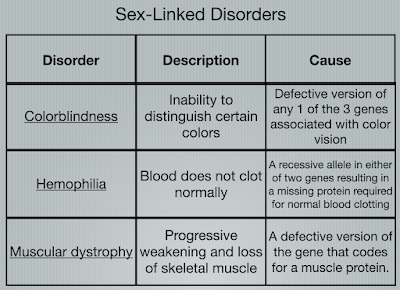 There are numerous sex-linked disorders that come from X chromosome. Thus, these disorders can only be passed on from the mother. Three of them are shown in the image below.